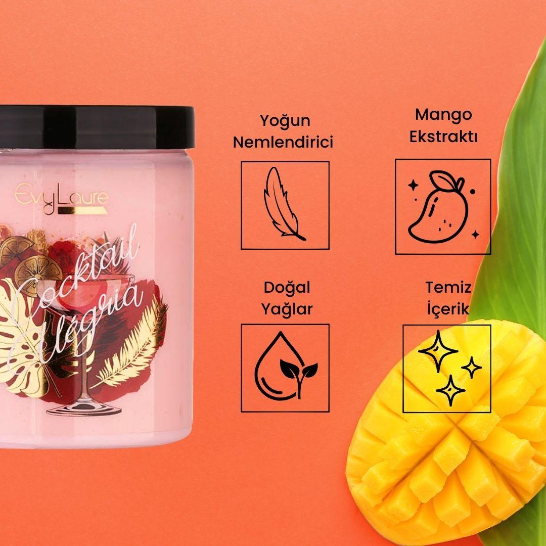 Pamper your skin with an exotic touch of hydration! Cocktail Alégria Body Butter combines the nourishing power of mango extract with a luxuriously light texture to deliver deep moisture, silky softness, and a radiant glow.