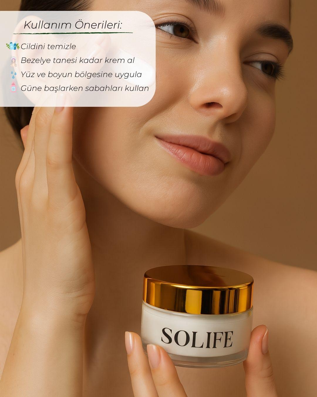 Güne başlarken cildinizi nemlendirir ve enerjik bir görünüm sağlar. Güneşin zararlı etkilerine karşı koruma sağlar. Kolajen içeriği ile cildin elastikiyetini artırır. Uzun süreli nemlendirme sağlayarak cildin yumuşaklığını korur.