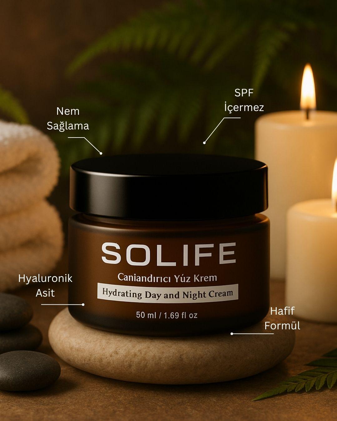 Solife Hydrating Day and Night Nemlendirici Krem, cildinizin ihtiyacı olan nem ve bakımı eksiksiz bir şekilde karşılamak üzere tasarlanmıştır. Her kullanımda cildinizi besler, yumuşatır ve doğal bir ışıltı kazandırır. Güzellik ve sağlık için etkili bir nemlendirici arıyorsanız, bu ürün ideal bir seçenektir.