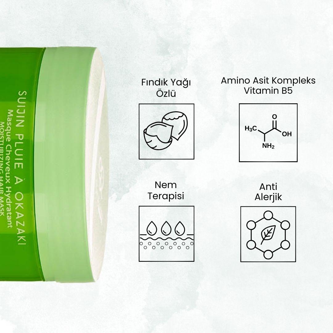Saçlarınızı doğadan gelen profesyonel bakım ile buluşturun! SoLife Suijin Saç Maskesi, Japonya’nın yağmur ormanlarından ilham alarak geliştirilen özel formülü sayesinde saçlarınıza yoğun nem ve derinlemesine bakım sunar.